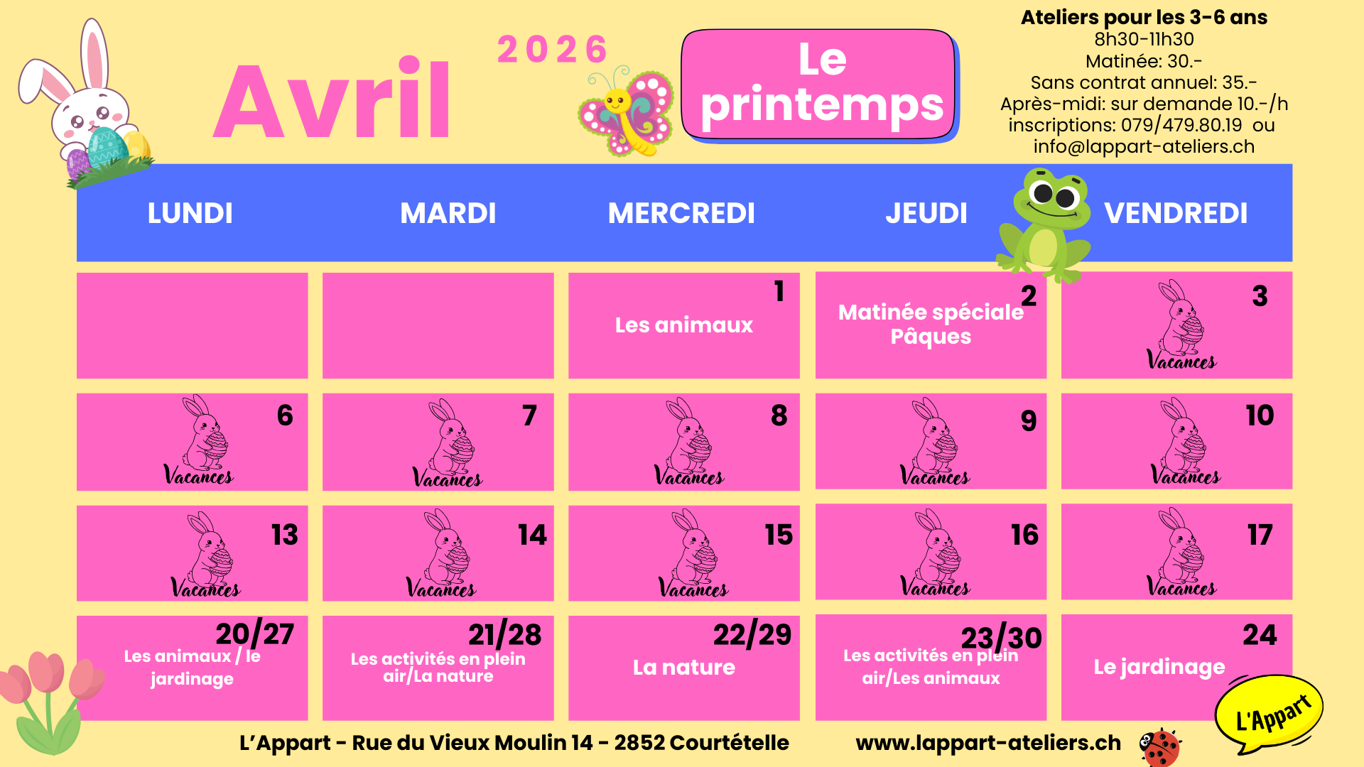Infos et inscriptions sur info@lappart-ateliers.ch ou au 079/479.80.19