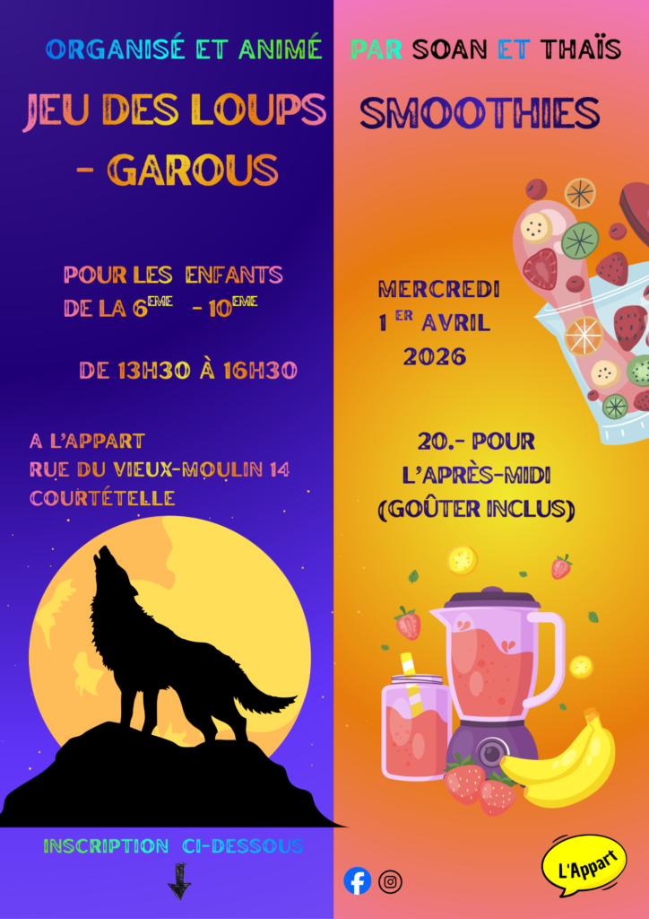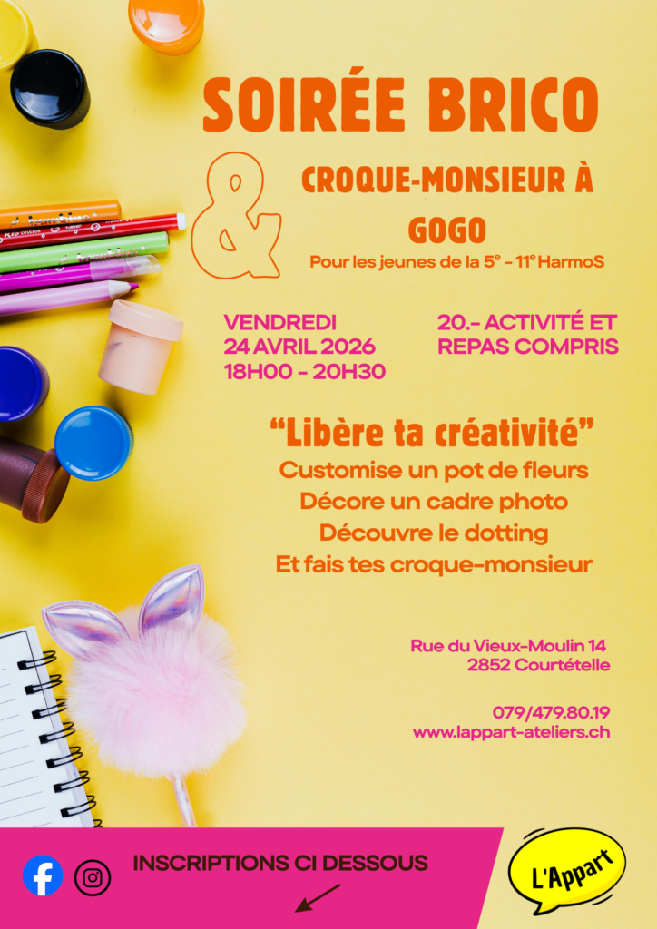 L’Appart, c’est un lieu d’accueil, d’animation et de rencontres destiné aux écoliers de la région. Ils peuvent y venir dès la 3ème à la 11ème HarmoS en fonction des prestations proposées. Ouvert du lundi au vendredi de 6h45 à 18h00 et durant les vacances scolaires, l’accompagnement y est pensé et adapté en fonction de leurs besoins. C’est nouveau et c’est à Courtételle !